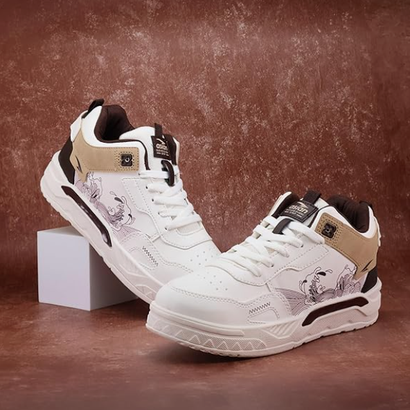 white brown water print sneakers for men